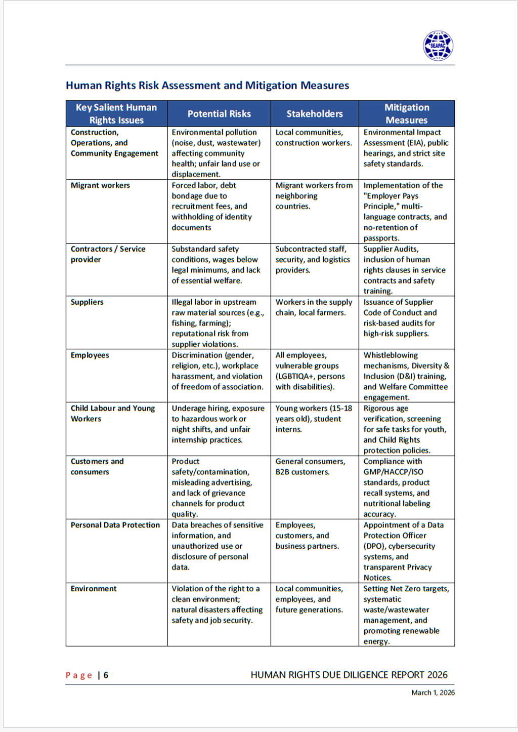 SOUTHEAST ASIAN PACKAGING AND CANNING HUMAN RIGHTS DUE DILIGENCE REPORT 2026